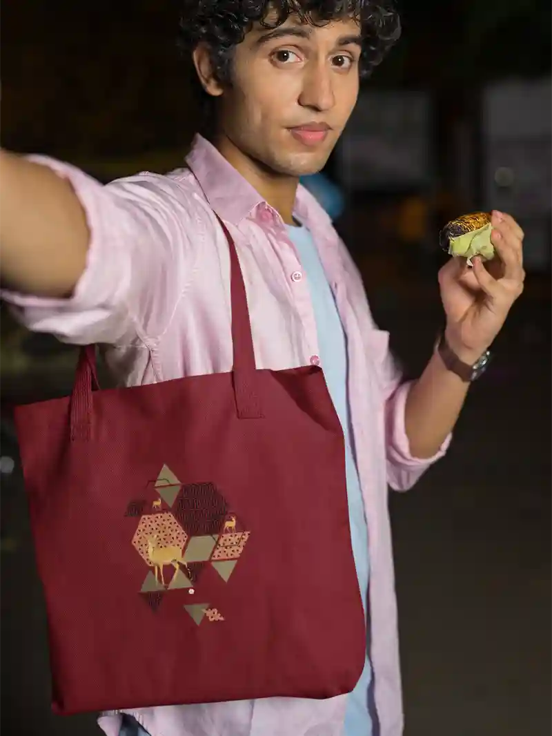 Doe A Deer | Canvas Tote Bag is more than just a practical accessory—it’s a statement piece. Inspired by Mughal Art, Indian Folk art, and traditional motifs, our designs fuse historical influences with modern styling, . . creating a unique and eye-catching aesthetic. Each print tells a story, adding depth and character to your everyday outings. Excellent value heavyweight 100% Natural Cotton finished in its natural state, can be carried by hand or over your shoulder. Eco-friendly OKEO TEX Certified inks will be printed directly into the fabric meaning there are no cheap transfers, plastics or solvents used in the production of this environmentally friendly tote.